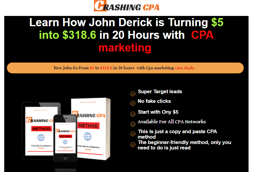 Crashing CPA Training is New CPA Method Show You How John Derick is Turning $5 into $318.6 in 20 Hours with CPA marketing Case Study. Crashing CPA is a unique method that will help you turn $10 into $300+, without any experience and working worldwide. Some trick on how he tested running CPA offer and started with only $5 bucks and end with $318.6 on his pocket in 20 hours running target CPA traffic from Search Engine platform. The traffic source that you will be using is a unique, powerful source of converting traffic. you will not get any fake clicks! You will be front of real people. I am talking aboutpeople who looking for your offer people who are ready to put their information. I can not guarantee you how much you can make because I don’t know that you will be following my method or no, but if you follow can easily make $200+ a day. This is your opportunity to make HUGE profits, with little to no effort. After finishing the setup, you can expect fast conversions doing little to no work at all.on top of that, you don’t need to use any tools, software. Bear in mind, that under the conditions we currently are, more and more people are looking to start making money online… In other words, this industry is set to EXPLODE over the upcoming months and… This is time for financial freedom, only with simple $10 bucks you can start profitable CPA Bussines and earn 5 figures a month. As I mentioned before You will need Small Investment Off $5 to setup Your Crashing CPA Campaign ,note this is amazing and profitable traffic source, I will show you how to setup everthing. Check Crashing CPA Here!